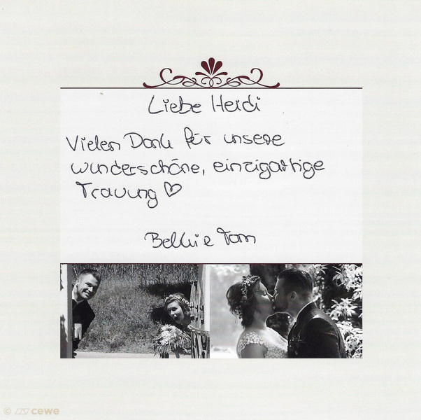 Natürlich ist es für mich absolut wichtig, Eure persönlichen Wünsche zu Euren Texten oder auch Redewünsche mit in mein Konzept für Euren großen Tag mit einzubauen - Verschwiegenheit ist Ehrensache!